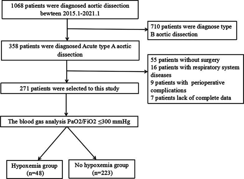 Background: The aim of this study was to explore whether or to what extent metabolic syndrome (METs) and its components were associated with hypoxemia in acute type A aortic dissection (ATAAD) patients after surgery.