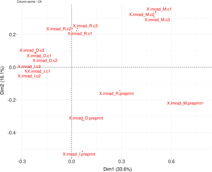 Keywords: Citation contexts; Correspondence analysis; IMRaD; PLOS; Preprint.