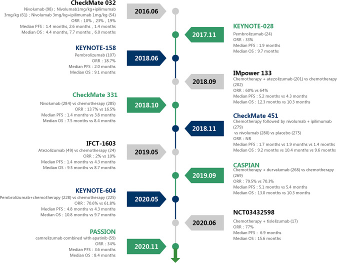 Small-cell lung cancer (SCLC) encounters up 15% of all lung cancers, and is characterized by a high rate of proliferation, a tendency for early metastasis and generally poor prognosis. Most of the patients present with distant metastatic disease at the time of clinical diagnosis, and only one-third are eligible for potentially curative treatment. Recently, investigations into the genomic make-up of SCLC show extensive chromosomal rearrangements, high mutational burden and loss-of-function mutations of several tumor suppressor genes. Although the clinical development of new treatments for SCLC has been limited in recent years, a better understanding of oncogenic driver alterations has found potential novel targets that might be suitable for therapeutic approaches. Currently, there are six types of potential treatable signaling pathways in SCLC, including signaling pathways targeting the cell cycle and DNA repair, tumor development, cell metabolism, epigenetic regulation, tumor immunity and angiogenesis. At this point, however, there is still a lack of understanding of their role in SCLC tumor biology and the promotion of cancer growth. Importantly optimizing drug targets, improving drug pharmacology, and identifying potential biomarkers are the main focus and further efforts are required to recognize patients who benefit most from novel therapies in development. This review will focus on the current learning on the signaling pathways, the status of immunotherapy, and targeted therapy in SCLC.
