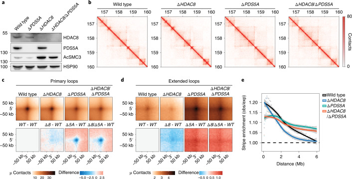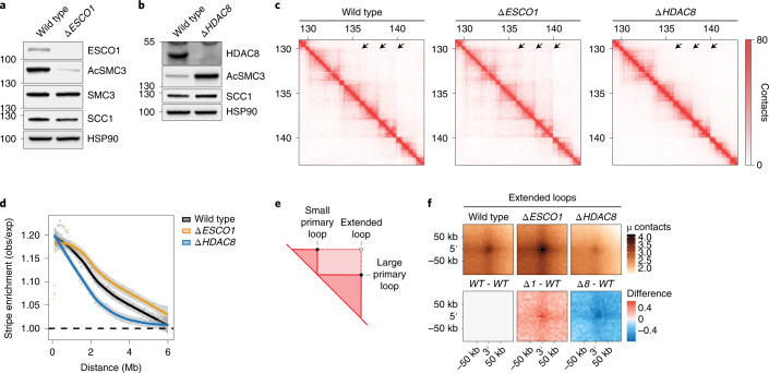 Cohesin structures the genome through the formation of chromatin loops and by holding together the sister chromatids. The acetylation of cohesin's SMC3 subunit is a dynamic process that involves the acetyltransferase ESCO1 and deacetylase HDAC8. Here we show that this cohesin acetylation cycle controls the three-dimensional genome in human cells. ESCO1 restricts the length of chromatin loops, and of architectural stripes emanating from CTCF sites. HDAC8 conversely promotes the extension of such loops and stripes. This role in controlling loop length turns out to be distinct from the canonical role of cohesin acetylation that protects against WAPL-mediated DNA release. We reveal that acetylation controls the interaction of cohesin with PDS5A to restrict chromatin loop length. Our data support a model in which this PDS5A-bound state acts as a brake that enables the pausing and restart of loop enlargement. The cohesin acetylation cycle hereby provides punctuation in the process of genome folding.