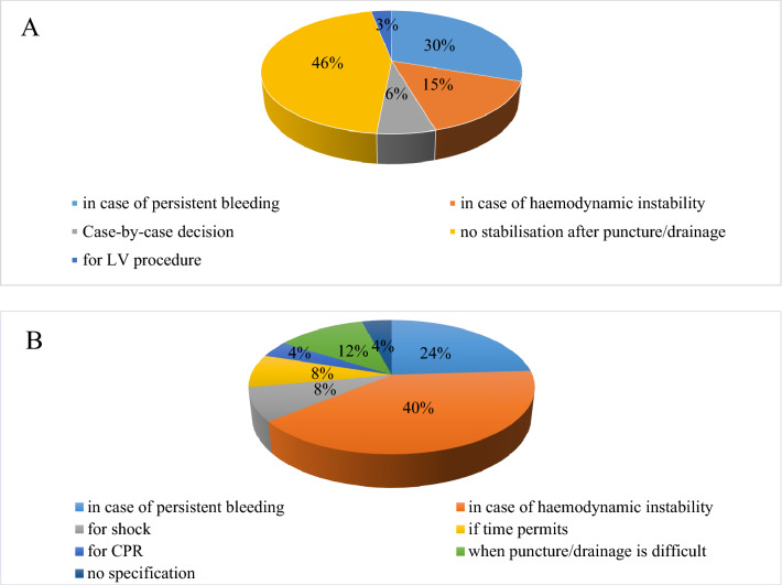 Conclusion: The present survey shows that the management of cardiac tamponade is still inhomogeneous in German ablation centers. However, multiple findings of this survey can be generalized and might guide especially less experienced operators and centers in their treatment and decision strategies.