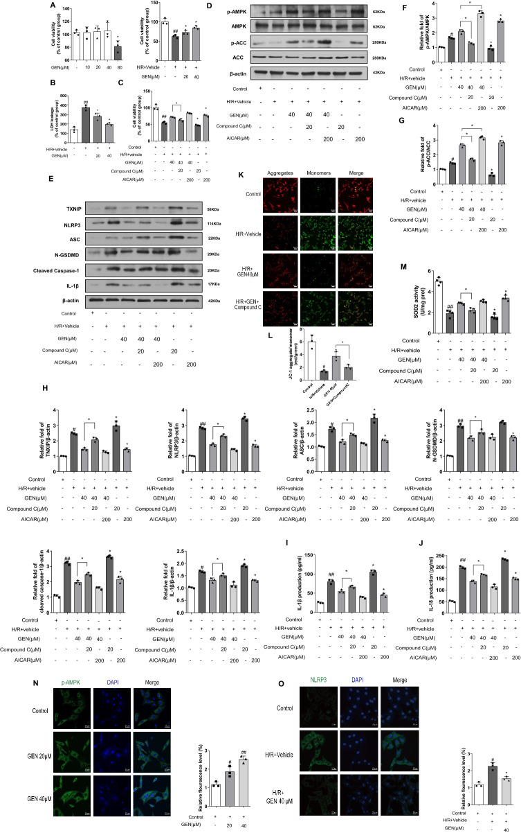 Conclusions: In our study, geniposide can significantly inhibit NLRP3 inflammasome activation via the AMPK signaling pathway and inhibit pyroptosis of cardiomyocytes in myocardial tissues.