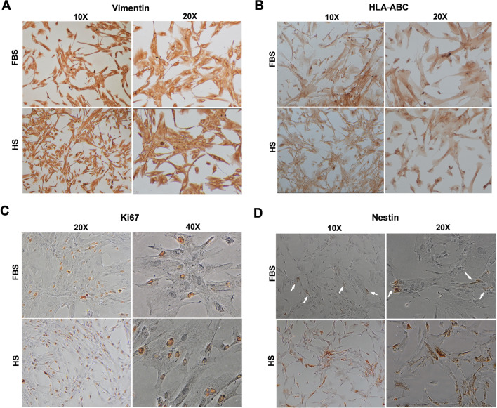 Material and methods: FPMSCs were isolated and expanded from the pancreas of legally aborted fetuses with few modifications in our previously established protocol. The cells were expanded in two different culture media, including DMEM supplemented with 10% FBS or 10% pooled HS. A side-by-side comparison was made to evaluate the effect of each serum on proliferation rate, cell cycle, senescence, multi-lineage differentiation capacity, immunophenotype, and tumorigenesis of FPMSCs.