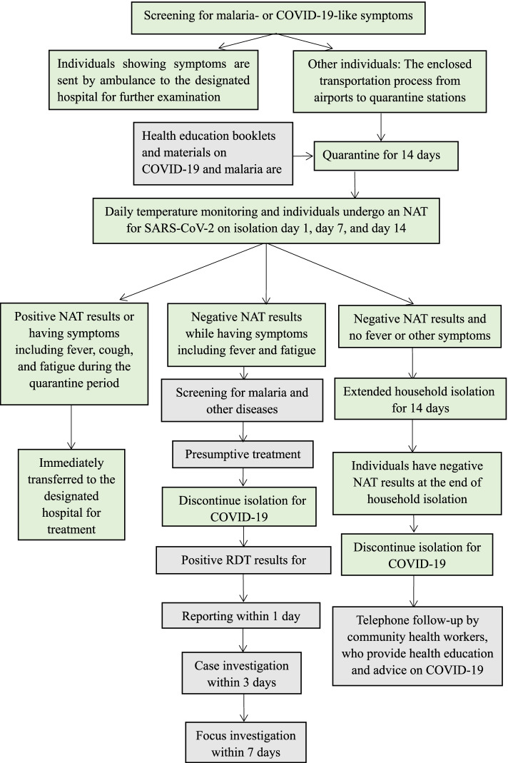 Keywords: COVID-19; Imported malaria; Integrated health program; Malaria elimination; Prevention of re-establishment.