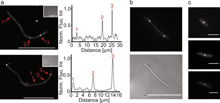 During infection of bladder epithelial cells, uropathogenic Escherichia coli (UPEC) can stop dividing and grow into highly filamentous forms. Here, we find that some filaments of E. coli UTI89 released from infected cells grow very rapidly and by more than 100 μm before initiating division, whereas others do not survive, suggesting that infection-related filamentation (IRF) is a stress response that promotes bacterial dispersal. IRF is accompanied by unstable, dynamic repositioning of FtsZ division rings. In contrast, DamX, which is associated with normal cell division and is also essential for IRF, is distributed uniformly around the cell envelope during filamentation. When filaments initiate division to regenerate rod cells, DamX condenses into stable rings prior to division. The DamX rings maintain consistent thickness during constriction and remain at the septum until after membrane fusion. Deletion of damX affects vegetative cell division in UTI89 (but not in the model E. coli K-12), and, during infection, blocks filamentation and reduces bacterial cell integrity. IRF therefore involves DamX distribution throughout the membrane and prevention of FtsZ ring stabilization, leading to cell division arrest. DamX then reassembles into stable division rings for filament division, promoting dispersal and survival during infection.