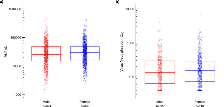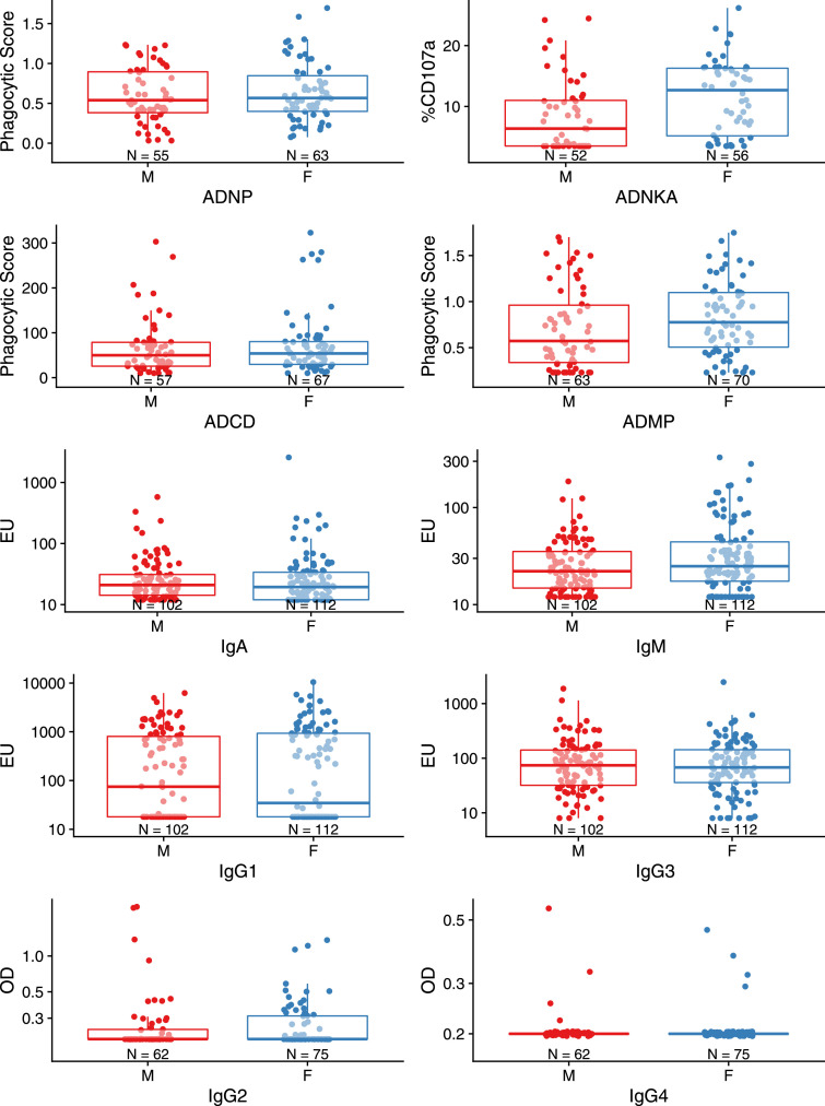 Findings: 7619 participants received ChAdOx1 nCoV-19 and 7550 received the control. Vaccine efficacy in participants after two doses of ChAdOx1 nCoV-19 (4243 females and 3376 males) was 66.1% (95% CI 55.9-73.9%) in males and 59.9% (95% CI 49.8-67.9%) in females; with no evidence of a difference in efficacy between the sexes (vaccine by sex interaction term P=0.3359). A small, statistically significant difference in anti-spike IgG was observed (adjusted GMR 1.14; 95% CI 1.04-1.26), with higher titres in females than males, but there were no statistically significant differences in other immunological endpoints. Whilst the majority of individuals reported at least one systemic reaction following a first dose of ChAdOx1 nCoV-19, females were twice as likely as males to report any systemic reaction after a first dose (OR 1.95; 95% CI 1.37-2.77). Measured fever of 38°C or above was reported in 5% of females and 1% of males following first doses. Headache and fatigue were the most commonly reported reactions in both sexes.