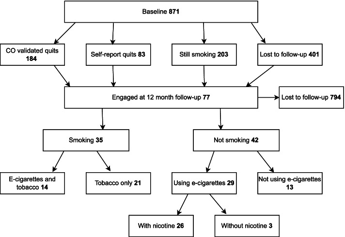 Conclusions: E-cigarette distribution combined with pharmacy support appears to be an agreeable and effective intervention for smoking cessation, but further data are needed on long-term quit rates and health effects.