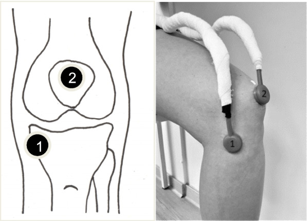 Results: Controlled for participant's age, knee demanding activity level and osteoarthritis stage, the conditions significantly differed in their impact on the MPF (mean(± SD) pre-post-differences standing up: placebo: 9.55(± 29.15) Hz/ exercise: 13.01(± 56.06) Hz, F = 4.9, p < 0.05) and the amplitude (standing up: placebo:0.75(± 1.43) dB/ exercise: 0.51(± 4.68) dB, F = 5.0, p < 0.05; sitting down: placebo: 0.07(± 1.21) dB/ exercise: -0.16(± .36) dB, F = 4.7, p < 0.05) at the tibia. There were no differences in the MPF and amplitude during walking and descending stairs (p > 0.05). At the patella, we found significant differences in the MPF during walking (placebo 0.08(± 1.42) Hz/ exercise: 15.76(± 64.25) Hz, F = 4.8, p < .05) and in the amplitude during descending stairs (placebo: 0.02 (± 2.72) dB/ exercise: -0.73(± 2.84) dB, F = 4.9, p < 0.05). There were no differences in standing up/ sitting down for both parameters, nor in descending stairs for the MPF and walking for the amplitude (p > 0.05).