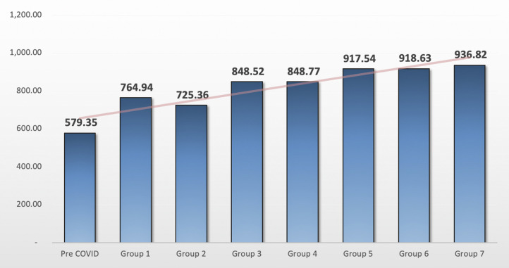 Methods: Operating room, inpatient unit, and outpatient clinic financial data were examined retrospectively. The monthly averages for a 14-month control cohort before COVID-19 (January 2019 to February 2020) were compared to the averages for seven interval groups of sequential, 3-month cohorts from March 2020 through November 2021 (groups 1-7).