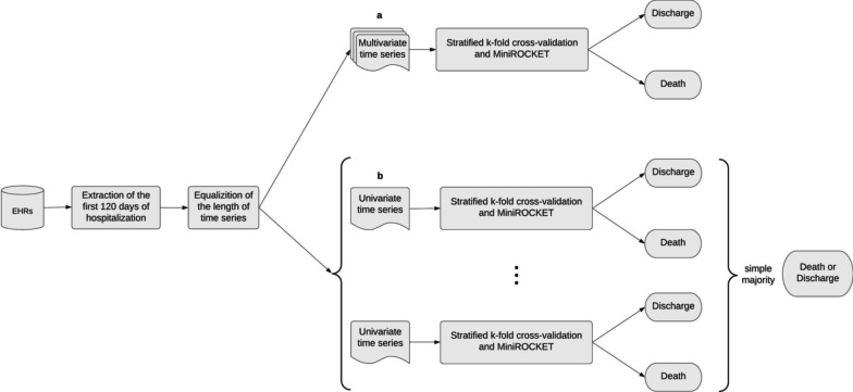 Predicting the outcome for COVID-19 patients by applying time series classification to electronic health records