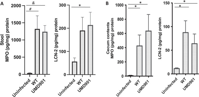 Enteropathogenic Escherichia coli (EPEC) expressing a non-functional bundle-forming pili (BFP) also leads to increased growth failure and intestinal inflammation in C57BL/6 mice
