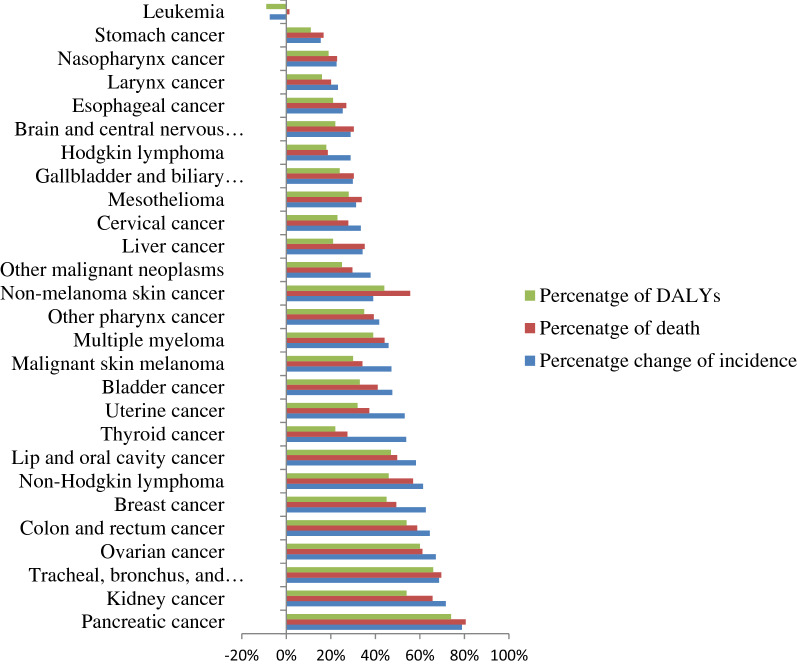 - Global Burden of Disease Cancer Center. Kocarnik JM, Compton K, Dean FE, Fu W, Gaw BL, et al. Cancer incidence, mortality, years of life lost, years lived with disability, and disability-adjusted life years for 29 cancer groups from 2010 to 2019: A systematic analysis for the global burden of disease study 2019. JAMA Oncol. 2021;8:420–444. doi: 10.1001/jamaoncol.2021.6987. - DOI - PMC - PubMed