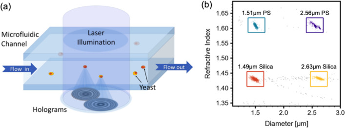Total holographic characterization (THC) is presented here as an efficient, automated, label-free method of accurately identifying cell viability. THC is a single-particle characterization technology that determines the size and index of refraction of individual particles using the Lorenz-Mie theory of light scattering. Although assessment of cell viability is a challenge in many applications, including biologics manufacturing, traditional approaches often include unreliable labeling with dyes and/or time consuming methods of manually counting cells. In this work we measured the viability of Saccharomyces cerevisiae yeast in the presence of various concentrations of isopropanol as a function of time. All THC measurements were performed in the native environment of the sample with no dilution or addition of labels. Holographic measurements were made with an in-line holographic microscope using a 40[Formula: see text] objective lens with plane wave illumination. We compared our results with THC to manual counting of living and dead cells as distinguished with trypan blue dye. Our findings demonstrate that THC can effectively distinguish living and dead yeast cells by the index of refraction of individual cells.