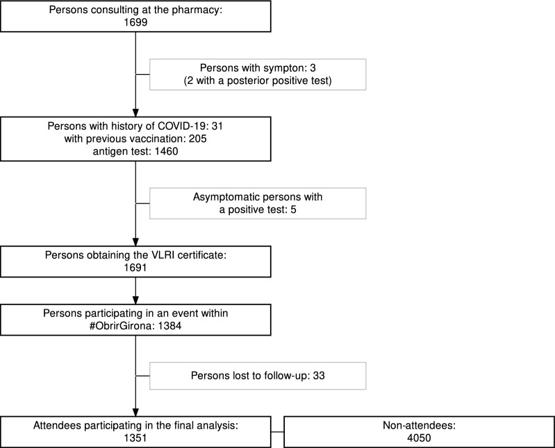There is an ongoing debate on the implementation of the COVID-19 passport throughout Europe. We sought to build and test a feasible prevention strategy to ensure low SARS-CoV transmission risk in public events. We conducted a non-randomised controlled study. The intervention group obtained a confidential digital certificate of very low capacity for transmitting SARS-CoV-2 and attended socio-cultural events in Girona (Spain) between 1 April and 21 May 2021. The primary care services and a network of pharmacies cooperated in providing the certification. A group of non-attendees was randomly selected from pseudonymised health records as controls. We estimated the incidences of SARS-CoV-2 infection and recorded the challenges in the process. Follow-up was complete for 1351 participants, who were matched with 4050 controls. Mean age of the study population was 31.1 years, and 53% of participants were women. Incidence rates of SARS-CoV infection at 14 days in the group of attendees and non-attendees were 15.9 and 17.7 per 100,000 person-days, respectively; the difference between incidences was - 1.8 (95% CI - 22.8, 19.3). Implementation problems were minor, and 89.2% of respondents to a survey were satisfied with the process. The incidence rate of SARS-CoV-2 infection was not different in the intervention and control groups. These results are in favour of establishing a COVID-19 certificate to attend public events, and connote feasibility of implementation at a population level.