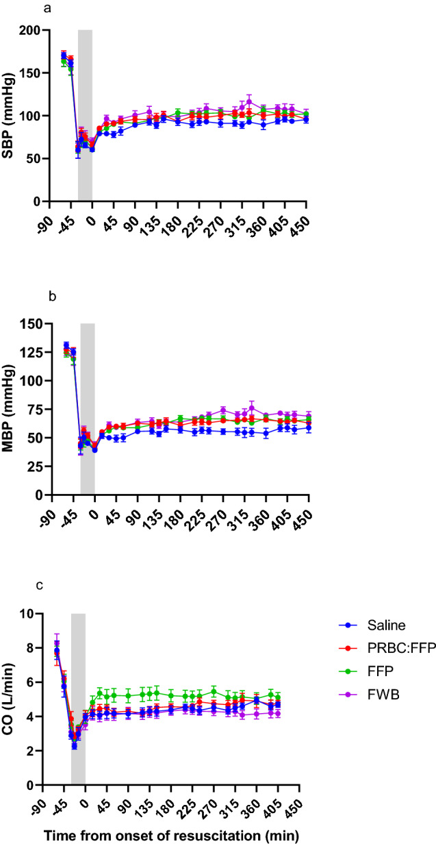 Conclusion: When times to advanced medical care are prolonged, resuscitation with blood/blood components is recommended over saline due to the superior quality and stability of resuscitation achieved, which are likely to lead to improved patient outcomes.