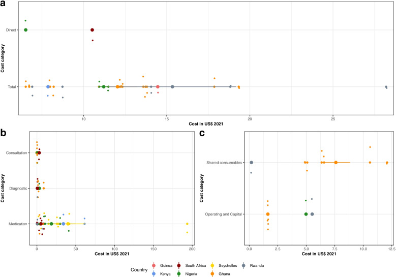 Results: Of 3999 results identified in the initial search, 33 were selected for data extraction. Costs differed between countries, costing perspectives and cost categories. Only 25% of the SSA countries were mentioned in the studies, with Nigeria dominating the research with a share of 27% of the studies. We identified 15 results each from a user or provider perspective. Medication costs were accountable for the most part of the expenditures with a range from 1.70$ to 97.06$ from a patient perspective and 0.09$ to 193.55$ from a provider perspective per patient per month. Major cost drivers were multidrug treatment, inpatient or hospital care and having a comorbidity like diabetes.