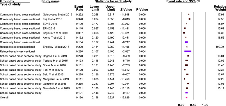 Conclusion: The pooled magnitude of anemia among adolescent girls in Ethiopia was 19.1% depicting a mild public health problem; while attained menarche, ≥ 5 days' blood flow during menses, food insecurity, inadequate diet diversity score, intestinal parasites, low body mass index, and rural residence were the associated factors. Hence, addressing health and nutrition wellness of adolescent girls should be center of concern in health, nutrition, agriculture, research, strategies and policies in Ethiopia.