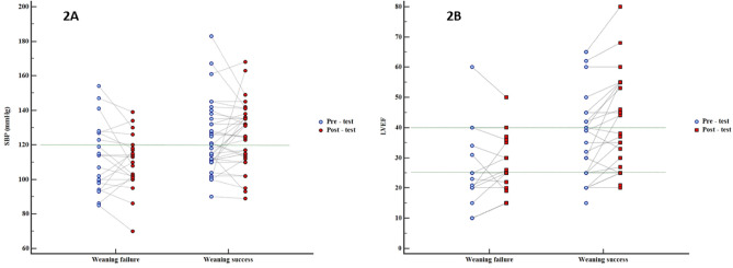 The use of veno-arterial extracorporeal membrane oxygenation (VA ECMO) for the treatment of refractory cardiogenic shock has increased significantly. Nevertheless, early weaning may be advisable to reduce the potential for severe complications. Only a few studies focusing on ECMO weaning predictors are currently available. Our objective was to evaluate factors that may help predict failure during VA ECMO weaning. We included 57 patients on VA ECMO support previously considered suitable for weaning based on specific criteria. Clinical, haemato-chemical and echocardiographic assessment was considered before and after a "weaning test" (ECMO flow < 2 L/min for at least 60 min). ECMO removal was left to the discretion of the medical team blinded to the results. Weaning failure was defined as a patient who died or required a new VA ECMO, heart transplant or LVAD 30 days after ECMO removal. Thirty-six patients (63.2%) were successfully weaned off VA ECMO, of whom 31 (54.4%) after the first weaning test. In case of first test failure, 3 out of 7 patients could be weaned after a 2nd test and 3 out of 4 patients after a 3rd test. Pre-existing ischemic heart disease (OR 9.6 [1.1-83]), pre-test left ventricular ejection fraction (LVEF) ≤ 25% and/or post-test LVEF ≤ 40% (OR 11 [0.98-115]), post-test systolic blood pressure ≤ 120 mmHg (OR 33 [3-385]), or length of ECMO support > 7 days (OR 24 [2-269]) were predictors of weaning failure. The VA ECMO weaning test failed in less than 40% of patients considered suitable for weaning. Clinical and echocardiographic criteria, which are easily accessible by a non-expert intensivist, may help increase the probability of successful weaning.
