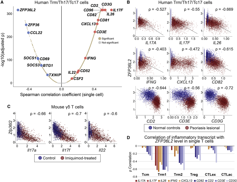 Keywords: ZFP36; ZFP36L2; cytokine; inflammation; psoriasis; resident-memory T cell; tristetraprolin scRNA-seq.