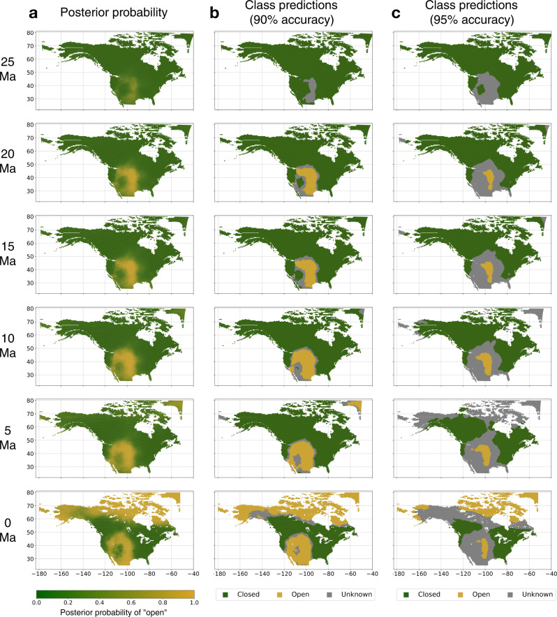 The origin and evolution of open habitats in North America inferred by Bayesian deep learning models