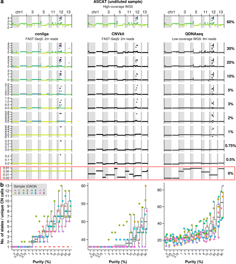 Conclusions: We show that conliga provides high-resolution SCNA profiles using a convenient, low-cost assay. We believe conliga makes FAST-SeqS a more clinically valuable assay as well as a useful research tool, enabling inexpensive and fast copy number profiling of pre-malignant and cancer samples.