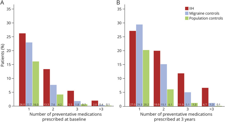 Discussion: Women with IIH were more likely to be prescribed opiate and simple analgesics compared with both migraine and population controls. Women with IIH trialed more preventative medications over their disease course suggesting that headaches in IIH may be more refractory to treatment.