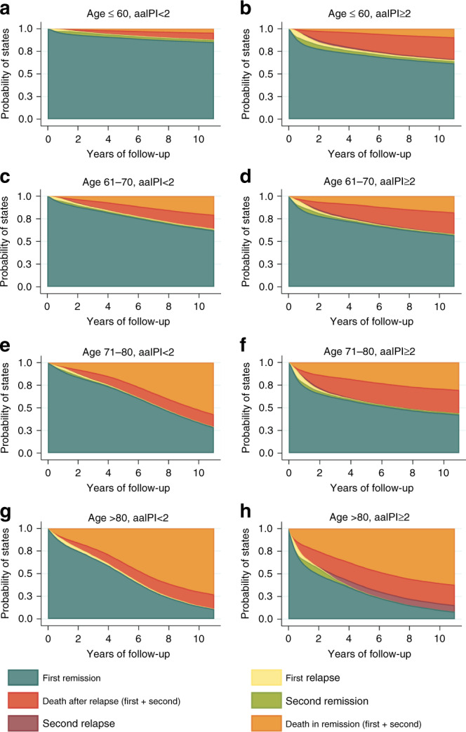 Conclusion: The long-term prognosis was overall favourable with 80% achieving durable first remissions. However, prognosis varied by clinical subgroups and relapsing patients seldom achieved durable second remissions.