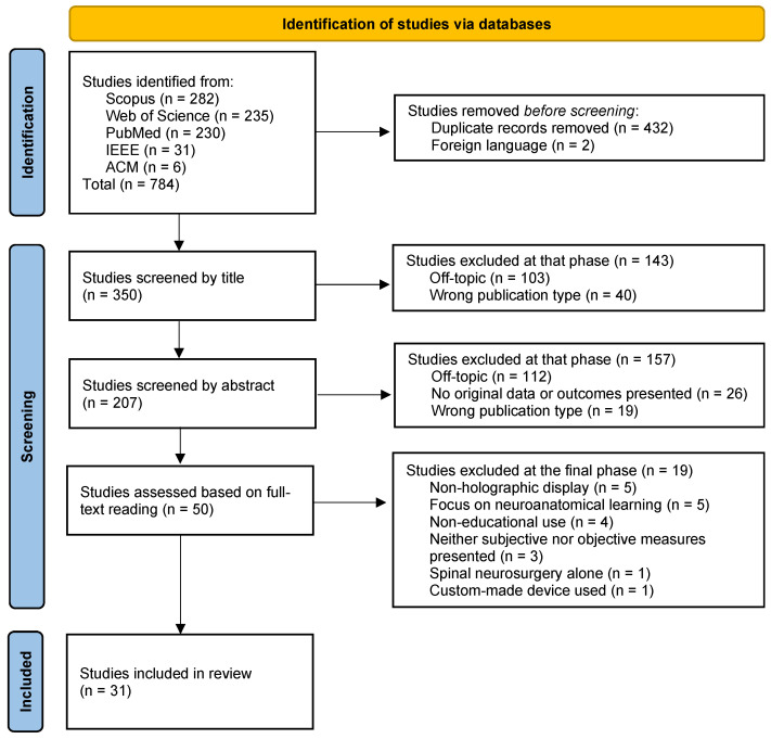 Keywords: augmented reality; education; extended reality; mixed reality; neurosurgery; procedural knowledge; residents; simulation; virtual reality.