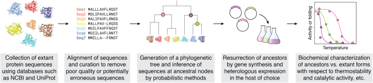 Natural proteins are often only slightly more stable in the native state than the denatured state, and an increase in environmental temperature can easily shift the balance toward unfolding. Therefore, the engineering of proteins to improve protein stability is an area of intensive research. Thermostable proteins are required to withstand industrial process conditions, for increased shelf-life of protein therapeutics, for developing robust 'biobricks' for synthetic biology applications, and for research purposes (e.g., structure determination). In addition, thermostability buffers the often destabilizing effects of mutations introduced to improve other properties. Rational design approaches to engineering thermostability require structural information, but even with advanced computational methods, it is challenging to predict or parameterize all the relevant structural factors with sufficient precision to anticipate the results of a given mutation. Directed evolution is an alternative when structures are unavailable but requires extensive screening of mutant libraries. Recently, however, bioinspired approaches based on phylogenetic analyses have shown great promise. Leveraging the rapid expansion in sequence data and bioinformatic tools, ancestral sequence reconstruction can generate highly stable folds for novel applications in industrial chemistry, medicine, and synthetic biology. This review provides an overview of the factors important for successful inference of thermostable proteins by ancestral sequence reconstruction and what it can reveal about the determinants of stability in proteins.