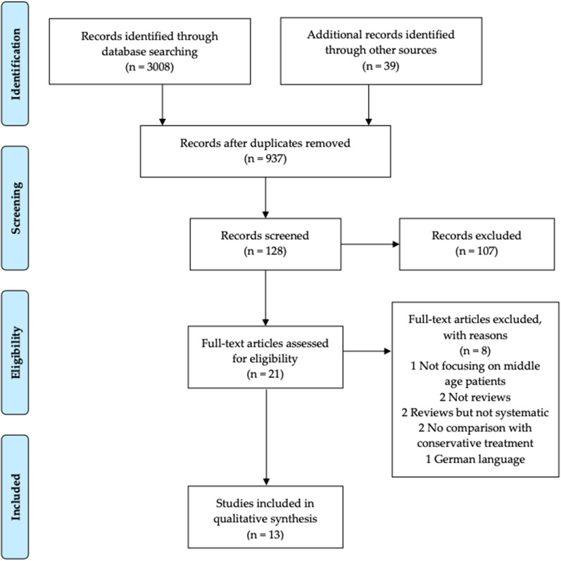 Conclusions: Conservative treatment based on physical therapy should be the first-line management. However, most SRs revealed subgroups of patients that fail to improve after conservative treatment and find relief when undergoing surgery. In the future, randomized controlled trials, evidence should be looked for that APM can be successful in case of the unsatisfactory results after physical therapy.
