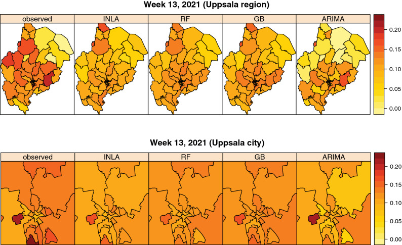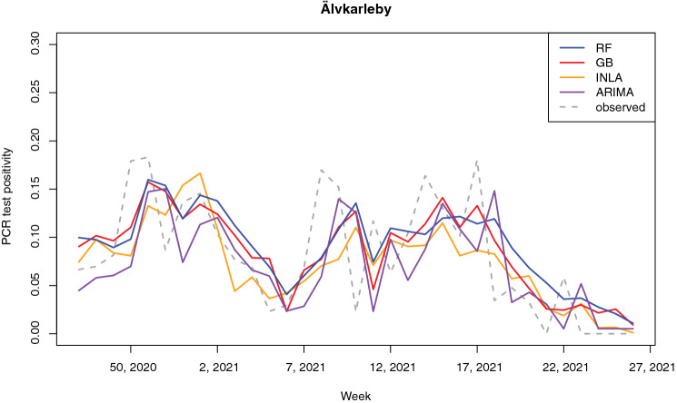 Spatio-temporal predictions of COVID-19 test positivity in Uppsala County, Sweden: a comparative approach