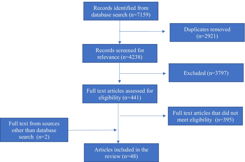 Methods: We conducted a scoping review using a comprehensive search strategy to include published literature in English between 2007 and 2020. The review was conducted between May and June 2021. We searched five electronic databases including CINAHL, the Cochrane Library, PubMed, Embase and Scopus. We also searched Google Scholar as a supplementary source. The review adhered to the PRISMA-ScR (PRISMA extension for scoping reviews) guidelines for reporting the searches, screening and identification of evaluation studies from the literature. A narrative synthesis of the evidence around key barriers and challenges for WHO guideline uptake in LMICs is thematically presented.