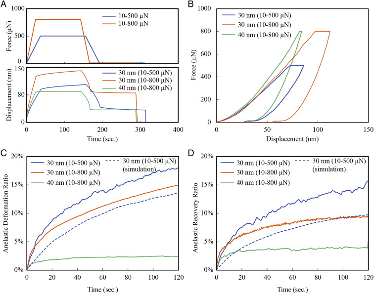 Keywords: 3D nanostructures; anelasticity; nanoindentation; nanolattices.