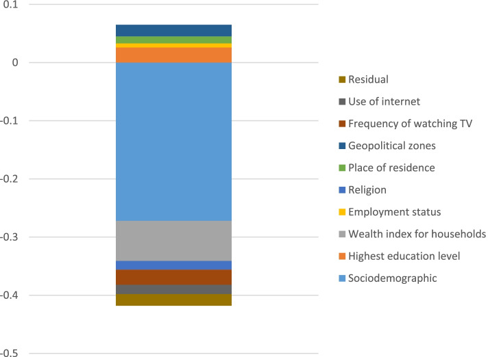 Results: The negative value of the Cn (-0.354; 95% confidence interval [CI] = -0.400 to -0.308) suggests that pregnancy is more concentrated among the poor teenagers. The decomposition analysis identified marital status, wealth index of households, exposure to information and communication technology, and religion as the most important predictors contributing to observed concentration of teenage pregnancy in Nigeria.