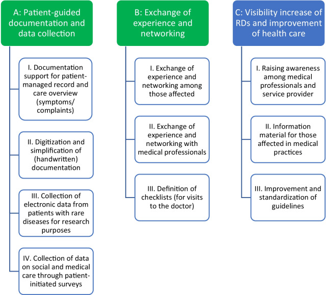 Conclusion: Qualitative, citizen science research can be used to collectively identify stakeholder needs, project topics and requirements for a digital application in specific areas, such as rare diseases.