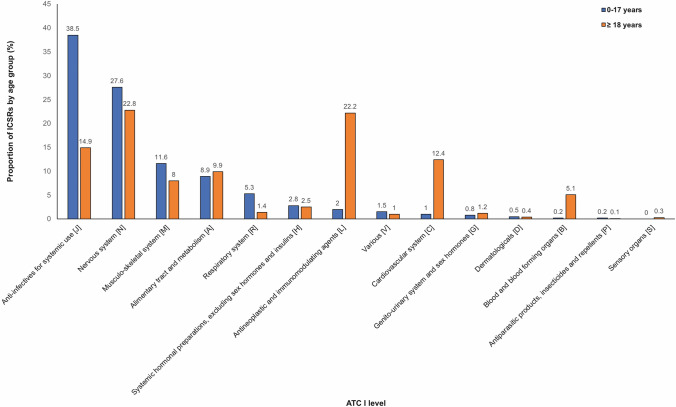 Methods: All Individual Case Safety Reports (ICSRs) concerning individuals aged under 18 years were extracted from 2010 to 2019. Duplicate and vaccine ICSRs were excluded. The remaining ICSRs were analyzed with respect to patients' demographic data, suspected drugs, and category of adverse drug reactions across different age groups.