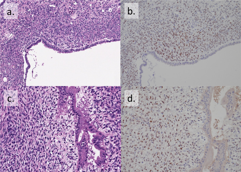 Case presentation: A 69-year-old woman was referred to our hospital for elevated serum liver enzyme levels and obstructive jaundice. The patient also complained of abdominal pain in the right hypochondriac region. Abdominal ultrasonography showed a cystic lesion in segment 4 (S4) of the liver. Computed tomography revealed a 4-cm multilocular cystic lesion with a thick wall and multiple septal formations, showing a cyst-in-cyst appearance in S4. Endoscopic retrograde cholangiography showed a contrast defect between the left hepatic duct and the common bile duct, which was suspected to be a nodular lesion in the bile duct. Bile cytology and biopsy of the nodular lesion showed no malignant findings. Based on these findings, the differential diagnosis in this patient included intraductal papillary neoplasm of the bile duct and MCN-L, which had malignant potential. The patient underwent left hemihepatectomy, including caudate lobe excision with bile duct resection and right hepatocholangiojejunostomy. Macroscopic findings showed a 40 × 29 mm multilocular cystic lesion with a polypoid nodule that protruded into the left intrahepatic bile duct. As an ovarian-like stroma was observed in both cystic and polypoid lesions microscopically, the histopathological diagnosis was MCN-L. The postoperative course was uneventful, and the patient was discharged 24 days after surgery. The patient is currently alive without recurrence 22 months after the surgery.