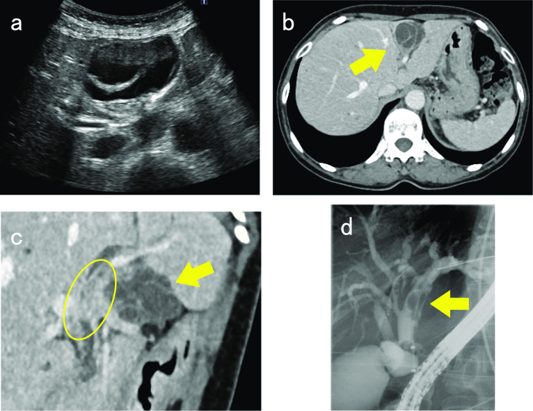 Background: Mucinous cystic neoplasm of the liver (MCN-L) is a rare cystic tumor as defined by the 2010 World Health Organization classification. MCN-L usually does not communicate with or grow into the bile duct. Herein, we present a rare case of MCN-L with a polypoid nodule protruding into the bile duct.