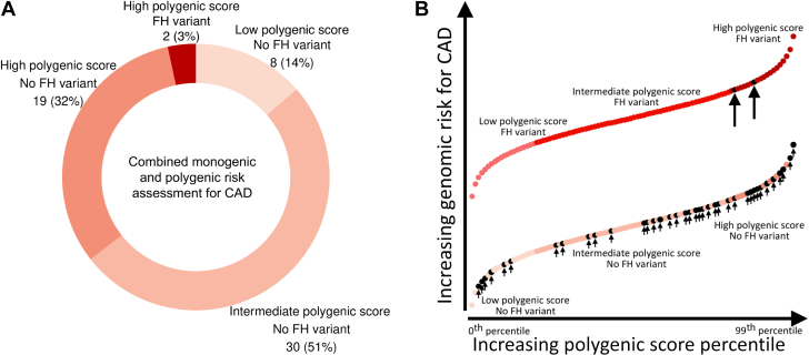 Background: State-of-the-art genetic risk interpretation for a common complex disease such as coronary artery disease (CAD) requires assessment for both monogenic variants-such as those related to familial hypercholesterolemia-as well as the cumulative impact of many common variants, as quantified by a polygenic score.