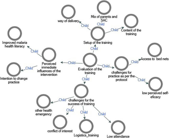 Results: The four themes identified after evaluation of MPE training were the setup of the training, challenges for the success of the training, anticipated challenges for practice as per the protocol and experienced immediate influences of the training. Participants appreciated the training: content covered, way of delivery and the mix of the participants. The context specific facilitators to bed net use were the collateral benefits of ITN and perceived at high risk of malaria while its barriers were quality and quantity of the bed nets, bed net associated discomforts, malaria health literacy and housing condition. Severeness of malaria symptoms and malaria health literacy were reported as both barriers and facilitators of the PDAT of malaria. The identified facilitators of PDAT of malaria were health professionals' attitude and exposure to MPE while its barriers were poverty, use of traditional medicine, health facility problems and Coronavirus Disease 2019 (COVID-19) pandemic.