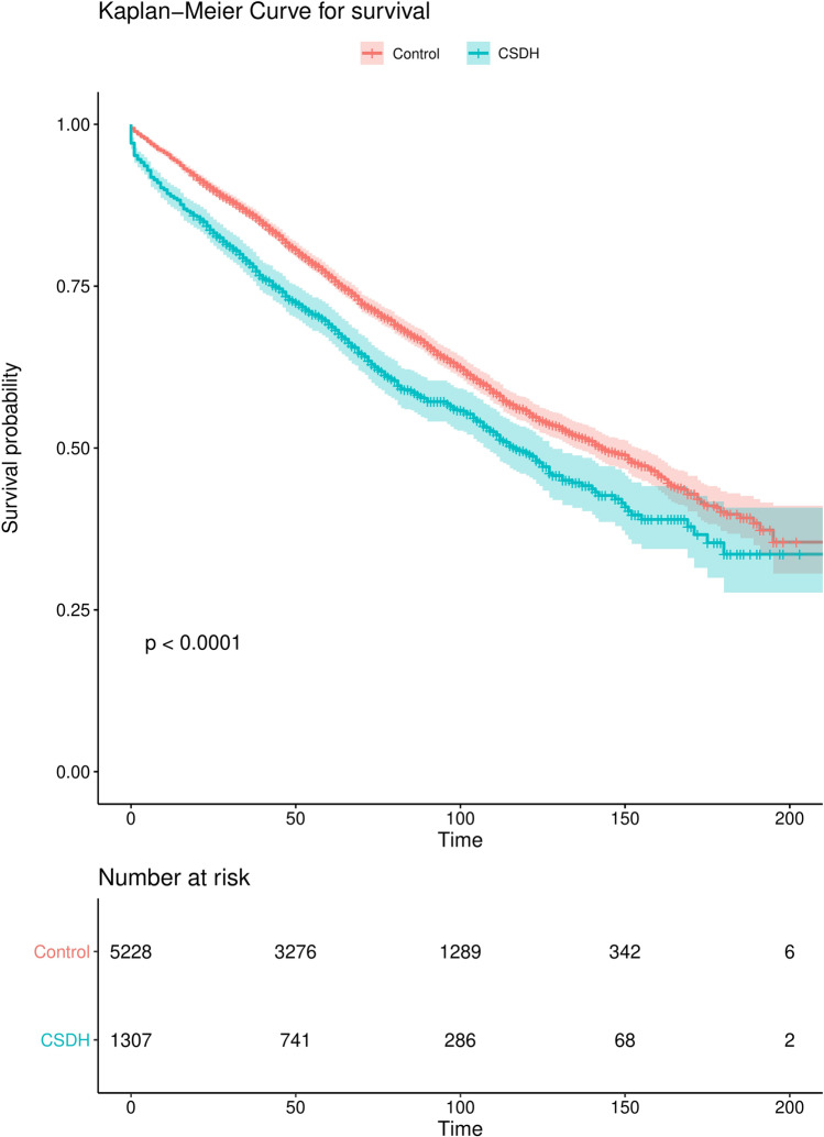 Conclusions: CSDH patients have higher mortality rates than the general population. Frailty in CSDH patients is associated with higher mortality risk. More attention for the frailty of CSDH patients is warranted.