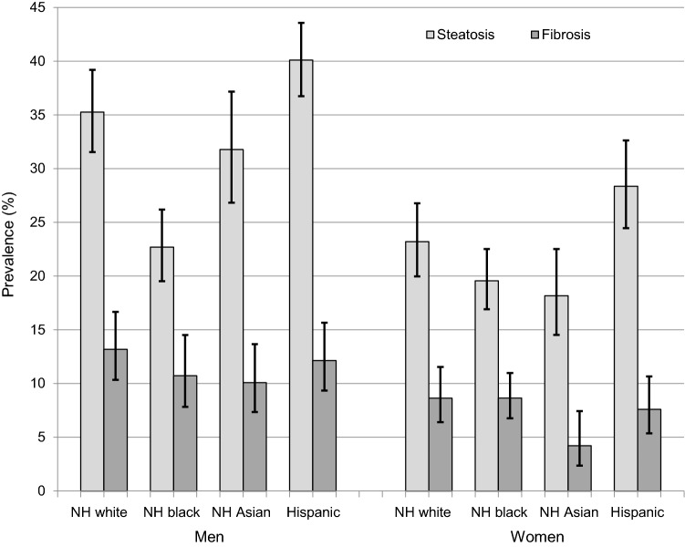 Methods: Liver stiffness and controlled attenuation parameter (CAP) were assessed on 7923 non-Hispanic white, non-Hispanic black, non-Hispanic Asian, and Hispanic men and women aged 20 years and over in the National Health and Nutrition Examination Survey (NHANES) 2017-March 2020 prepandemic data.