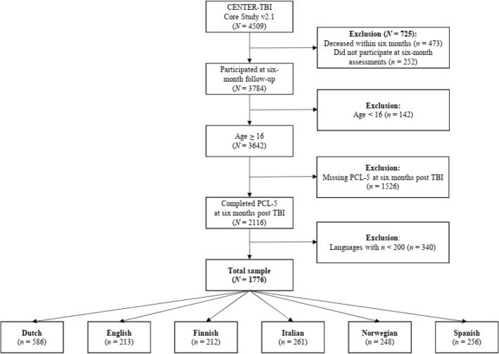 Measurement invariance of six language versions of the post-traumatic stress disorder checklist for DSM-5 in civilians after traumatic brain injury