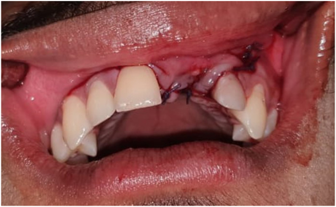 Case report: A 21/M reported to the department of Implantology with the complaint of missing tooth in the upper front tooth region since 1 year. History revealed extraction of upper left central incisor an year ago following trauma. Diagnosis was made as Siebert's Class I with horizontal bone loss irt 21 region with a bone defect of 10.54 x 5.08 x 4.85 mm. So a complete prosthetic rehabilitation protocol was made with an implant placement and grafting was planned with symphysis being most favourable.