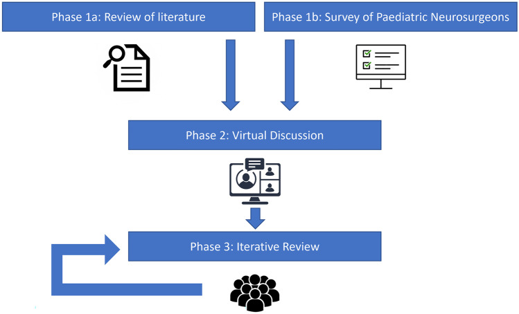 Neuro-endoscopic lavage (NEL) has shown promise as an emerging procedure for intraventricular haemorrhage (IVH) and post-haemorrhagic ventricular dilatation (PHVD). However, there is considerable variation with regard to the indications, objectives, and surgical technique in NEL. There is currently no randomised trial evidence that supports the use of NEL in the context of PHVD. This study aims to form a consensus on technical variations in the indications and procedural steps of NEL. A mixed-methods modified Delphi consensus process was conducted between consultant paediatric neurosurgeons across the UK. Stages involved literature review, survey, focused online consultation, and iterative revisions until > 80% consensus was achieved. Twelve consultant paediatric neurosurgeons from 10 centres participated. A standardised protocol including indications, a 3-phase operative workflow (pre-ventricular, intraventricular, post-ventricular), and post-operative care was agreed upon by 100% of participants. Case- and surgeon-specific variation was considered and included through delineation of mandatory, optional, and not recommended steps. Expert consensus on a standardised protocol for NEL was achieved, delineating the surgical workflow into three phases such as pre-ventricular, intraventricular, and post-ventricular, each consisting of mandatory, optional, and not recommended steps. The work provides a platform for future trials, training, and implementation of NEL.