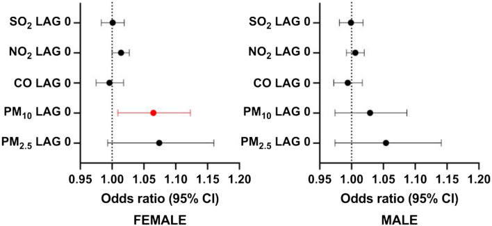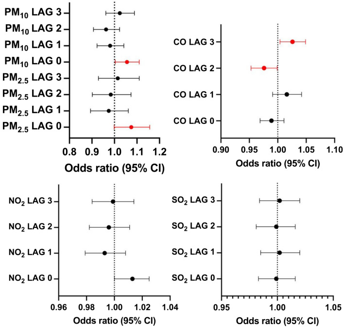 It is well known that exceeded levels of particulate matter in the air and other air pollutants harmfully affect the cardiovascular system. Empirical analyses of the effects of these factors on stroke incidence and mortality are still limited. The main objective of our analyses was to determine the association between short-term exposure to air pollutants and stroke incidence in non-industrial areas, more specifically in north-eastern Poland. To achieve this aim, we used data from the National Health Fund on patients hospitalized for stroke between 2011 and 2020 in the largest city of the region described as the Green Lungs of Poland. The pollution levels and atmospheric conditions data were obtained from the Provincial Inspectorate for Environmental Protection and the Institute of Meteorology and Water Management. Using daily data on hospitalizations, atmospheric conditions, and pollution, as well as ordered logistic regression models the hypotheses on the impact of weather and air pollution conditions on ischemic strokes were tested. The study group included 4838 patients, 45.6% of whom were male; the average patient age was approximately 74 years. The average concentrations of PM2.5 were 19.09 µg/m3, PM10 26.66 µg/m3 and CO 0.35 µg/m3. Analyses showed that an increase in PM2.5 and PM10 concentrations by 10 µg/m3 was associated with an increase in the incidence of stroke on the day of exposure (OR = 1.075, 95% CI 0.999-1.157, P = 0.053; OR = 1.056, 95% CI 1.004-1.110, P = 0.035) and the effect was even several times greater on the occurrence of a stroke event in general (PM2.5: OR = 1.120, 95% CI 1.013-1.237, P = 0.026; PM10: OR = 1.103, 95% CI 1.028-1.182, P = 0.006). Furthermore, a short-term (up to 3 days) effect of CO on stroke incidence was observed in the study area. An increase of 1 μg/m3 CO was associated with a lower incidence of stroke 2 days after the exposure (OR = 0.976, 95% CI 0.953-0.998, P = 0.037) and a higher incidence 3 days after the exposure (OR = 1.026, 95% CI 1.004-1.049, P = 0.022).