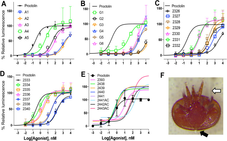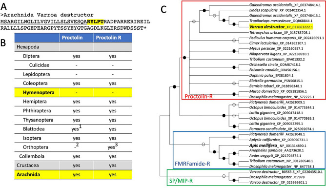The devastating Varroa mite (Varroa destructor Anderson and Trueman) is an obligatory ectoparasite of the honey bee, contributing to significant colony losses in North America and throughout the world. The limited number of conventional acaricides to reduce Varroa mites and prevent disease in honey bee colonies is challenged with wide-spread resistance and low target-site selectivity. Here, we propose a biorational approach using comparative genomics for the development of honey bee-safe and selective acaricides targeting the Varroa mite-specific neuropeptidergic system regulated by proctolin, which is lacking in the honey bee. Proctolin is a highly conserved pentapeptide RYLPT (Arg-Tyr-Leu-Pro-Thr) known to act through a G protein-coupled receptor to elicit myotropic activity in arthropod species. A total of 33 different peptidomimetic and peptide variants were tested on the Varroa mite proctolin receptor. Ligand docking model and mutagenesis studies revealed the importance of the core aromatic residue Tyr2 in the proctolin ligand. Peptidomimetics were observed to have significant oral toxicity leading to the paralysis and death of Varroa mites, while there were no negative effects observed for honey bees. We have demonstrated that a taxon-specific physiological target identified by advanced genomics information offers an opportunity to develop Varroa mite-selective acaricides, hence, expedited translational processes.