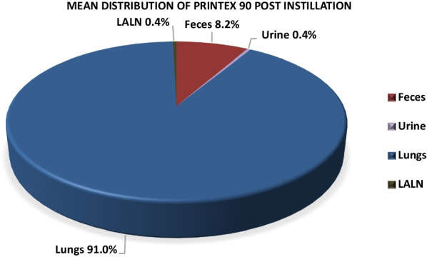 Results: In the pulmonarily exposed animals, 7Be-Monarch® 1000 and 7Be-Printex® 90 was detected in feces in the first 3 days after treatment at significant levels, i.e. 17.6% and 8.2%, respectively. In urine, small percentages of 6.7% and 0.4% were observed, respectively. In blood, radioactivity, representative of carbon black was within the background noise of the measurement method. At necropsy, 20 days post-instillation, both test items were practically exclusively found in lungs (75.1% and 91.0%, respectively) and in very small amounts (approximately 0.5%) in the lung-associated lymph nodes (LALN). In the other organs/tissues the test item was not detectable. BAL analyses indicated that carbon black particles were completely engulfed by alveolar macrophages. In orally exposed animals, 98% (7Be-Monarch® 1000) and 99% (7Be-Printex® 90) of the measured radioactivity was detected in feces. Excretion was complete within the first 3 days following treatment. 1.3% and 0.5% of measured activity was attributable to urine in animals that received 7Be-Monarch® 1000 and 7Be-Printex® 90, respectively. Radioactivity was absent in blood and other organs and tissues.