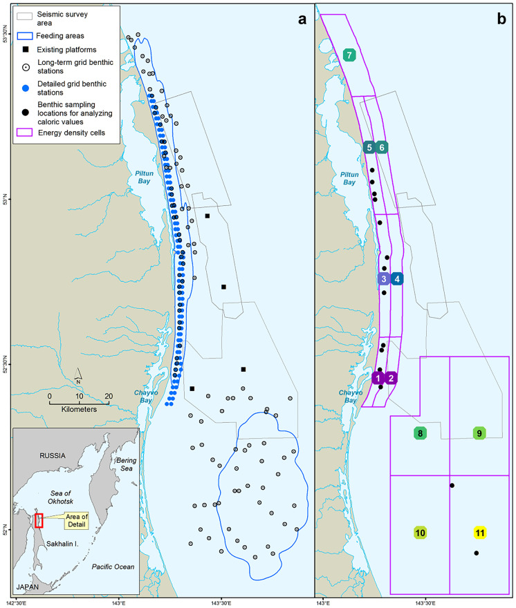 - Blanchard, A. L., Demchenko, N. L., Aerts, L., Yazvenko, S. B., Ivin, V. V., & Shcherbakov, I. A. (2022). Benthic studies adjacent to Sakhalin Island, Russia, 2015 I: benthic biomass and community structure in the nearshore gray whale feeding area. Environmental Monitoring and Assessment, 194. 10.1007/s10661-022-10017-8 - PMC - PubMed