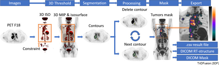 Results: The 3DF includes an image integration platform to register images from multiple imaging modalities together with delineated volumes of interest (VOIs), structures and dose distributions. It can process images from different vendors' systems and is therefore vendor neutral. The 3DF also provides a convenient tool for performing multi-modality image analysis and fusion. The functional components currently being distributed is open-source code that includes: (1) a high quality viewer that can display axial, coronal, and sagittal tomographic images, maximum intensity projection images, structure contours, and isointensity contour lines or dose colorwash, (2) multi-image fusion allowing multiple images to be fused with VOI and dose distributions, (3) a suite of segmentation tools to edit and/or create tumor and organ VOIs, (4) dosimetry tools for several radioisotopes, (5) clinical tools for correcting acquisition errors, including patient orientation, and (6) the ability to save the resultant image and VOI as DICOM files or to export the numerical results as comma separated values files. Because the code is written in MATLAB™, it is highly readable and is easier for the coder to make changes compared to languages such as C or C++. In what follows, we describe the content of the new TriDFusion (3DF) image viewer software platform using examples of a number of clinical research workflows. Such examples vary in complexity but illustrate the main attributes of the software.